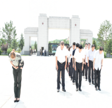 青山埋忠骨,鮮血染紅旗。結(jié)束小山村“新時代傳習所”主題黨課教育后,省農(nóng)擔驅(qū)車趕到坐落于敦化市翰章鄉(xiāng)翰章村的陳翰章烈士陵園拜謁陳翰章將軍。在翰章將軍的雕塑和紀念碑前,全體黨員群眾駐足默哀,緬懷將軍短暫而不朽的27載人生。